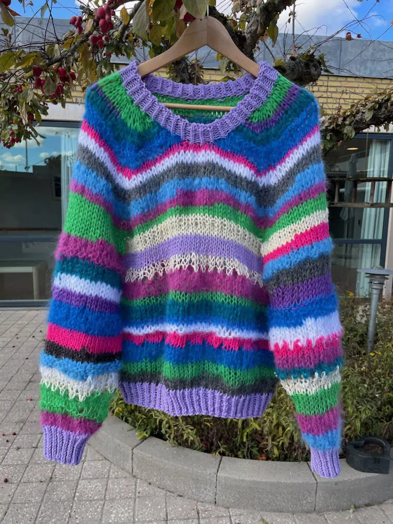 Til udstillingen på Arken har Lærke Bagger fået hjælp af strikkeglade ildsjæle, der bidrager med deres unikke version af "Inner Child" sweateren.